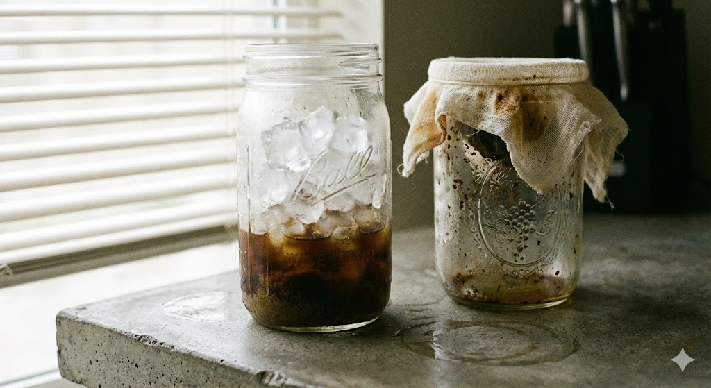 Cold brew concentrate keeps in a sealed jar in the refrigerator for up to two weeks before oxidation starts degrading it noticeably. After that it doesn’t become dangerous, it just becomes disappointing — flat, slightly stale, with a faint metallic edge that no amount of ice is going to fix. Label the jar with the date you made it. You will not remember. Nobody ever remembers. Two weeks, sealed, refrigerated. That’s your window.
